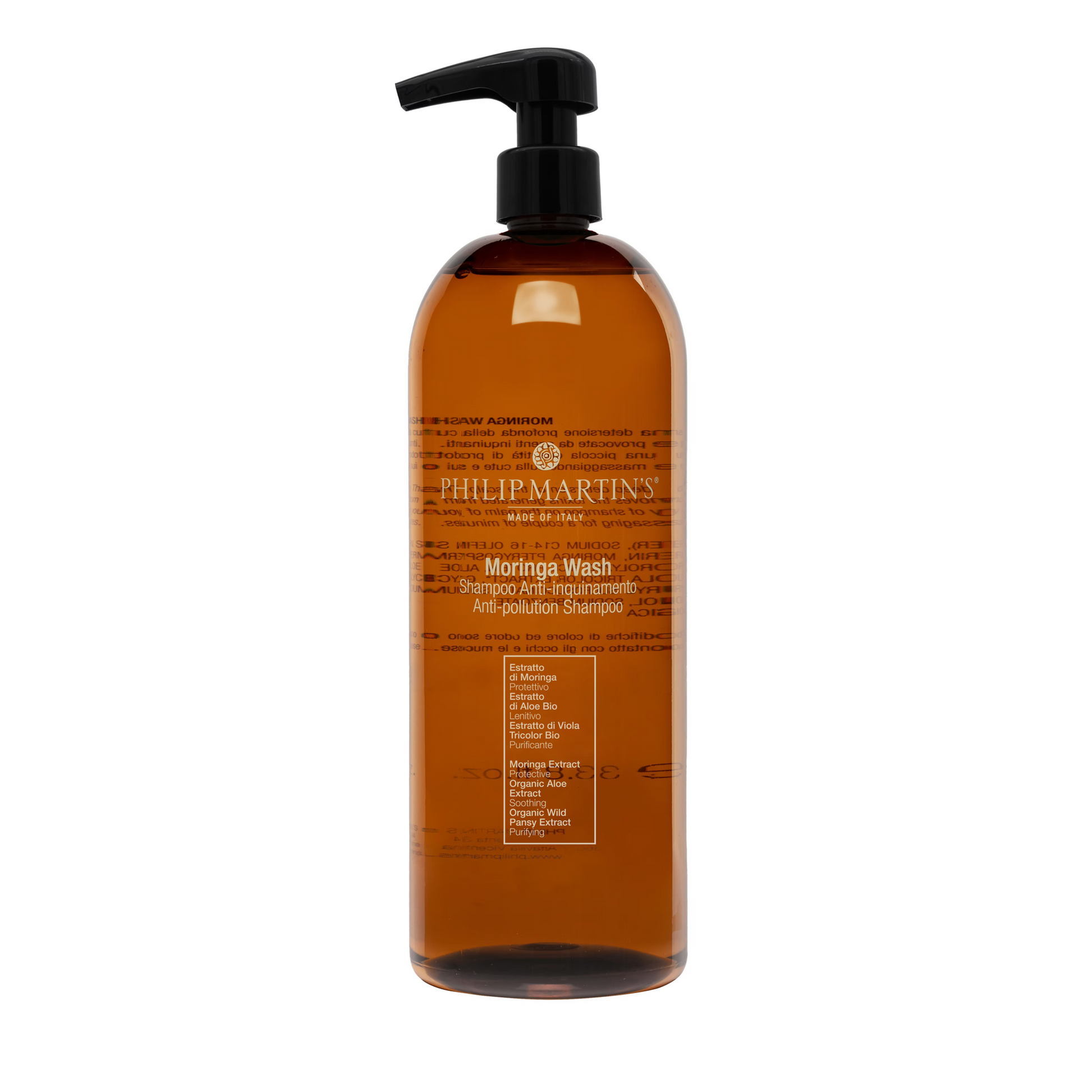 Elimină toxinele cauzate de poluare datorită concentrației ridicate de extract de moringa. Excelent pentru păr ondulat. Conține tenside de origine vegetală.
